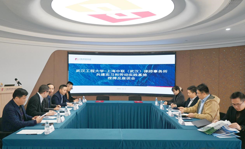 (通讯员 李树训)2025年12月2日,法商学院(知识产权学院)在上海中联(武汉)律师事务所举行实习和劳动实践基地挂牌仪式,并就校企双方合作交流以及法学实践人才培养开展座谈交流。上海中联(武汉)律师事务所余凯主任、邓君主任、谭家强主任、廖波主任等人,武汉工程大学法商学院(知识产权学院)班子成员及知识产权教研室部分教师代表参加了本次活动。