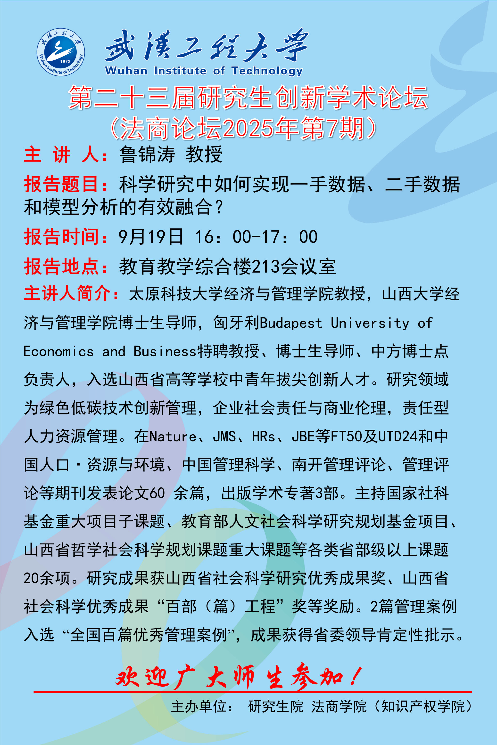 上一条:【研究生创新学术论坛】鲁锦涛教授、张骞严研究员应邀来我校做学术交流 下一条:【研究生创新学术论坛】金融类论文写作与投稿