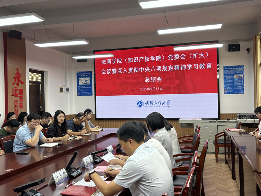 (通讯员 贺阳)9月18日下午,法商学院(知识产权学院)党委在学院311会议室召开扩大会议,全面总结深入贯彻中央八项规定精神学习教育工作,并就持续推动作风建设常态化长效化进行部署。会议由学院党委书记陈朝娟主持,学院全体教师党员参加。