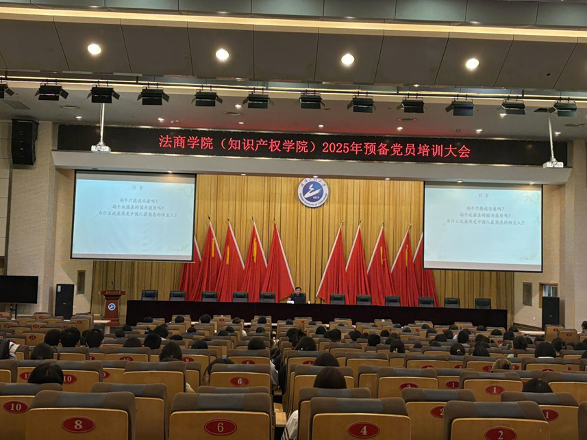 本网讯(贺阳、刘天睿、唐晨宸)11月8日,法商学院(知识产权学院)在四教多功能报告厅举办2025年预备党员培训。本次培训特邀郑承志教授担任主讲嘉宾,学院党委副书记孙勇、学院全体预备党员以及第18期发展对象和第76期积极分子参加活动。培训由党务干事贺阳主持。